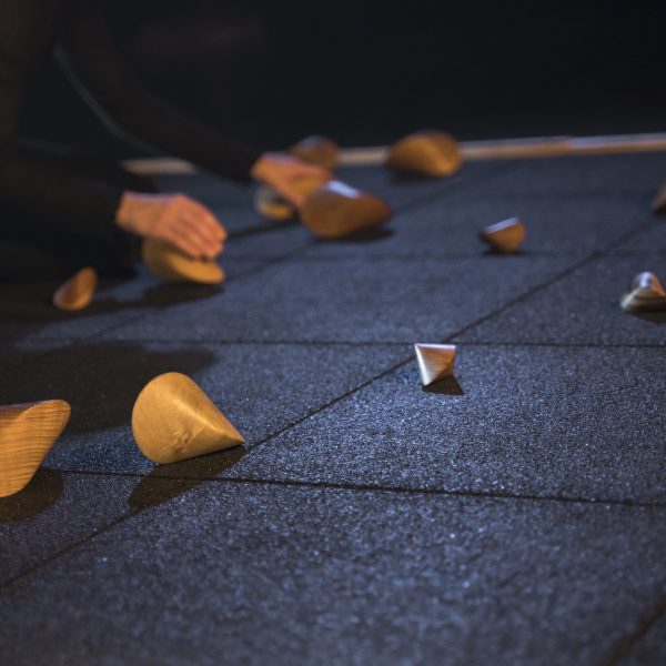 Turbula è una fantasticheria che ruota intorno a un oggetto sensibile, curioso e sfuggente: l’oloide. Ispirato alla sinuosità dell’acqua, ci invita a percorrere vie casuali, instabili ed effimere, generate da una manipolazione cauta ed essenziale. Dall’incontro tra il corpo e gli oggetti nascono metamorfosi e immagini ricche di simboli, che offrono a ognuno la possibilità di sbrigliare la propria immaginazione e di proiettarvi i propri impulsi. “Turbula” evade dalla dimensione del tempo e intreccia natura e poesia per offrire un momento di respiro, in controtendenza rispetto a un mondo caotico e rumoroso.